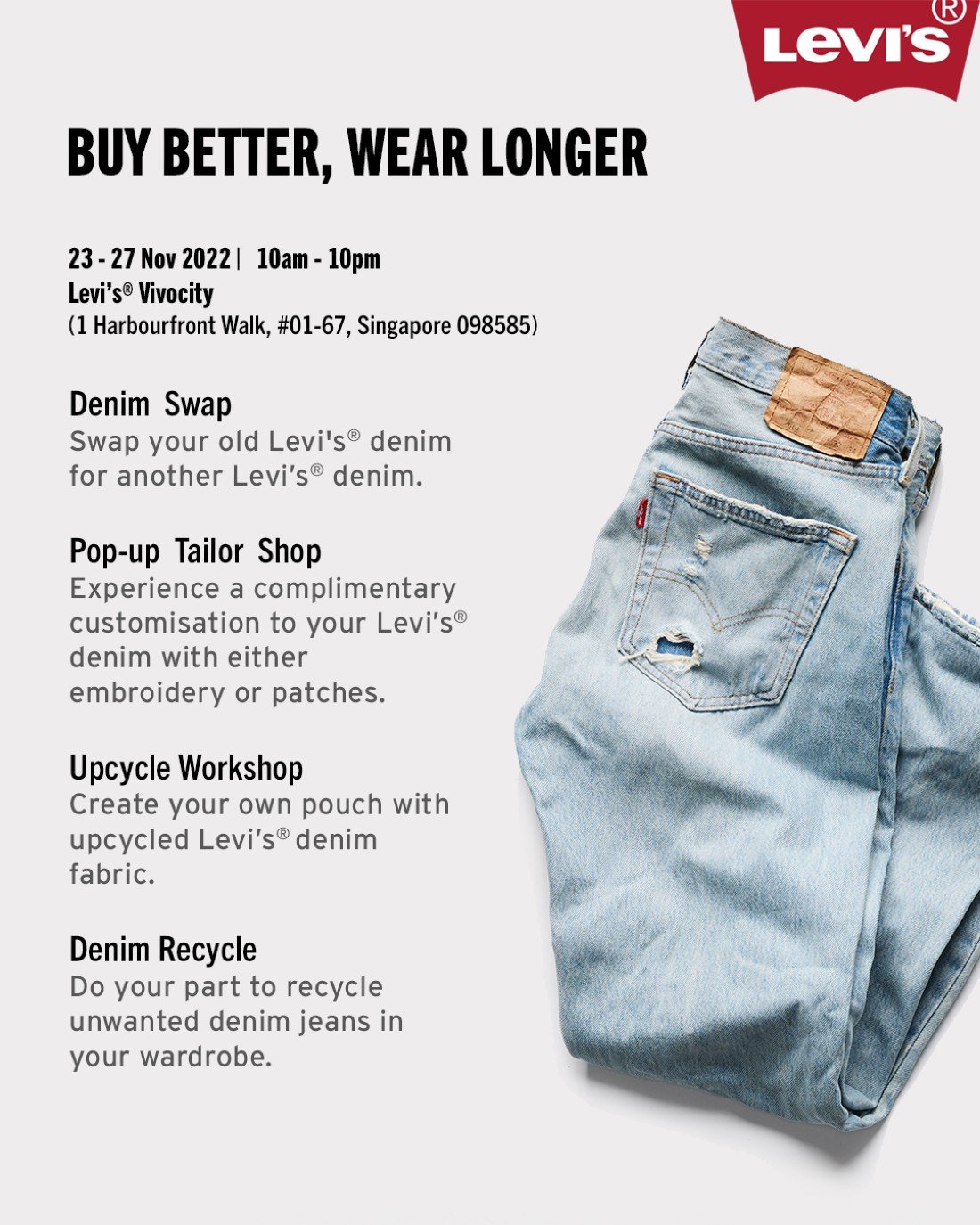 LEVI’S BUY BETTER, WEAR LONGER POPUP AT VIVOCITY, HarbourFront Walk