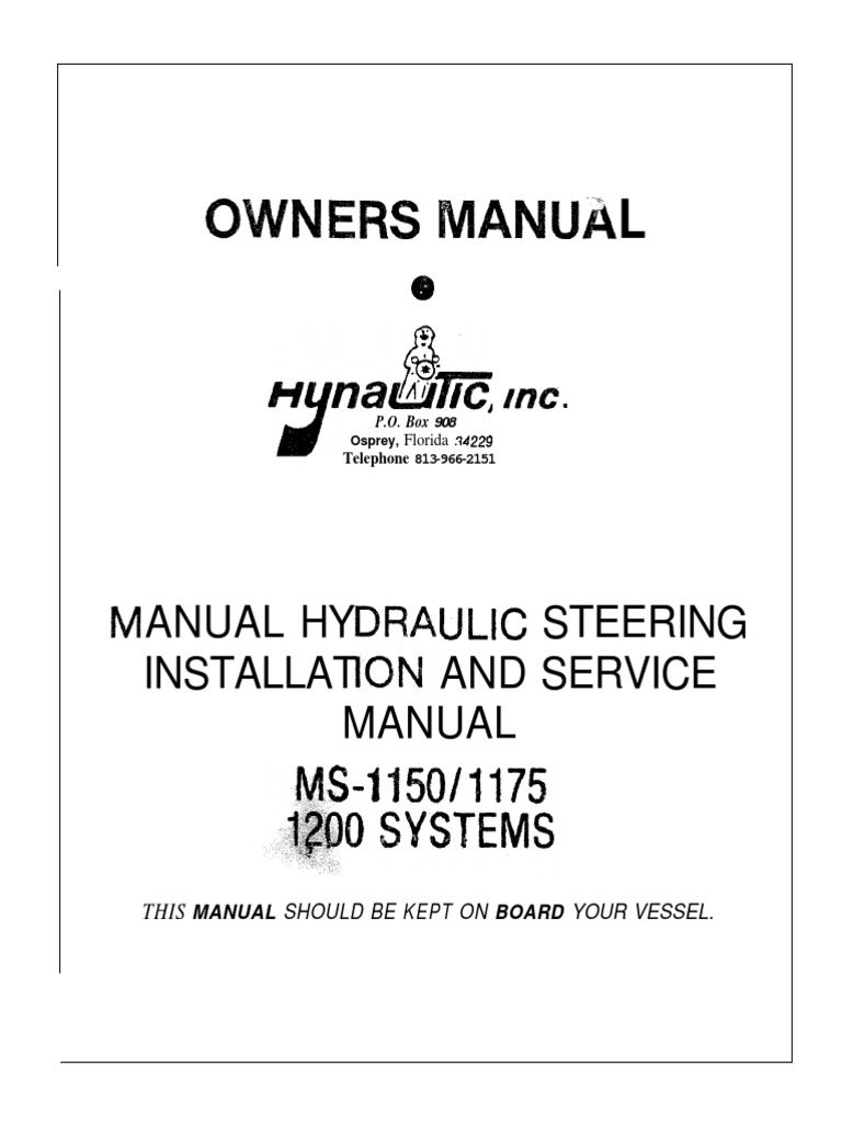 Installation and Service Manual for Hynautic Hydraulic Steering Systems