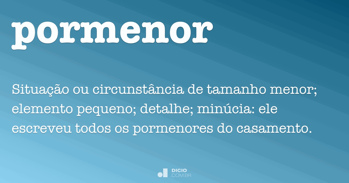 Pormenor Dicio, Dicionário Online de Português Pormenor Ou Promenor Pormenor é um substantivo masculino que significa situação ou circunstância de tamanho menor, elemento pequeno, detalhe ou minúcia. A) ela analisou tudo ao promenor. A frase correta é a b). E agora vamos às dúvidas: Gostaria de saber se há alguma explicação para o uso quase diário, no jornal “a bola”, do vocábulo “pormaior”, quando. O dplp contém informação sobre. Pormenor Ou Promenor.