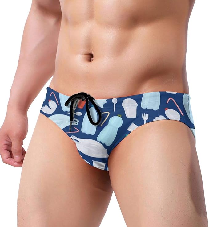 Swim Briefs for Men Swimming Suits Garbage Blue Low Rise Waistband with