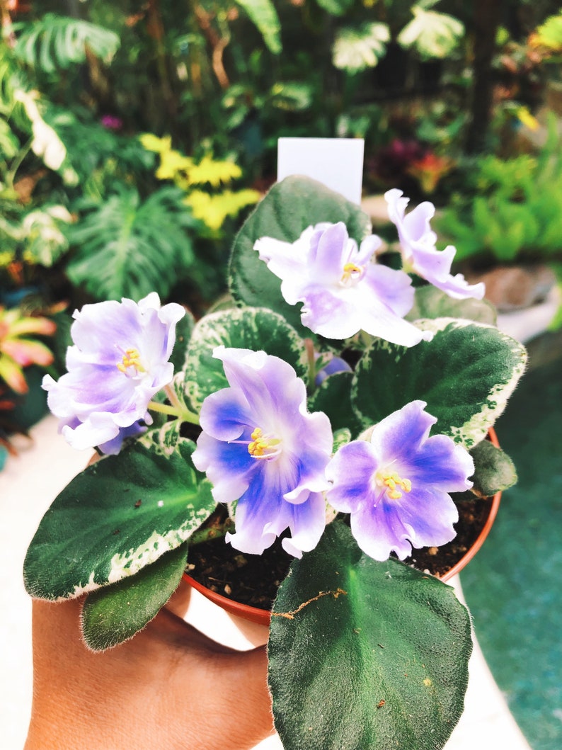 Live House Plant White Purple Bloom Variegated African Violet Etsy