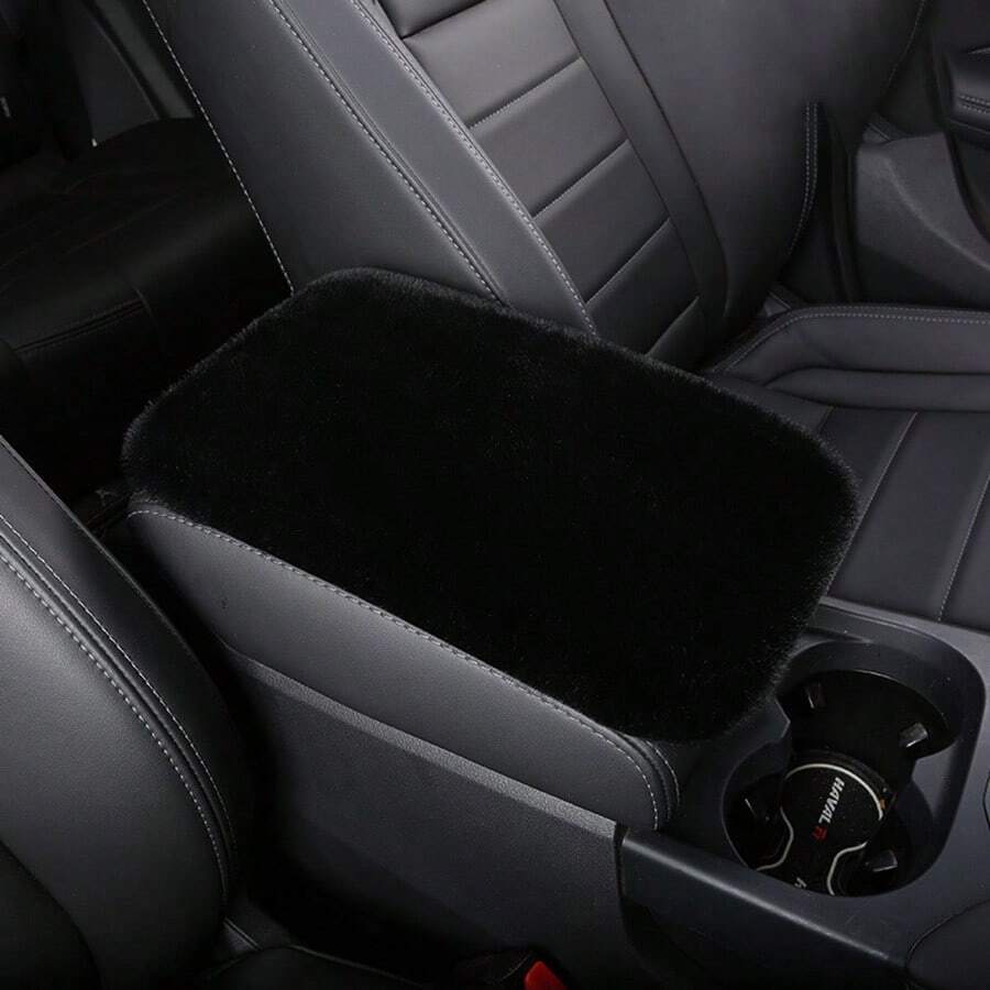 1pc Universal Car Armrest Cover Faux Plush Central Console Pad