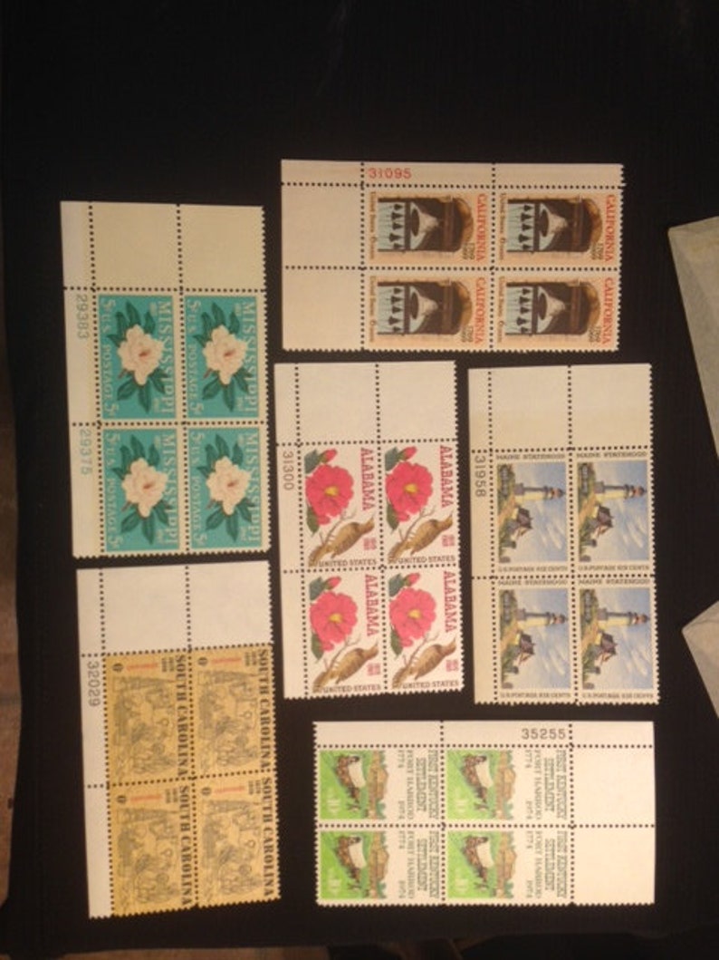 6 State Plate Blocks Commemorative Postage Stamps MNH OG Etsy Stamp Collecting Plate Blocks on the lila and dewitt wallace stamp, the four corner plate blocks make up 80 percent of every pane. These factors made it virtually impossible to design accurately sized boxes. a plate block is a block of postage stamps with a margin attached that bears the plate number used in printing that sheet of stamps. With various size. Stamp Collecting Plate Blocks.