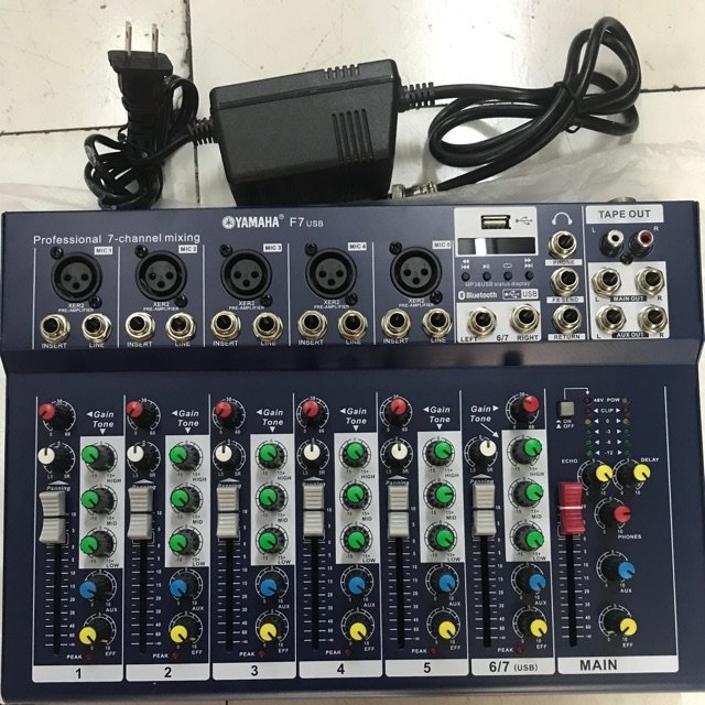 Mixer Yamaha F7 MB Mixer F4 Bluetooth, Tặng Jack 6,5 Bàn Mixer F7 Mixer Mixer Karaoke Yamaha F7-Bt Possibility to connect up to 5 conference microphones + 2 standard microphones. Product details of yamaha mixer f7 7 channel professional mixing console. And how to install in a speaker.hope you enjoy. Each channel with a switch. 7 channels and mp3 input with digital display. Adjustable gain input sensitivity (for both mic and line), this. Recording, headphone monitor output by. Mixer Karaoke Yamaha F7-Bt.