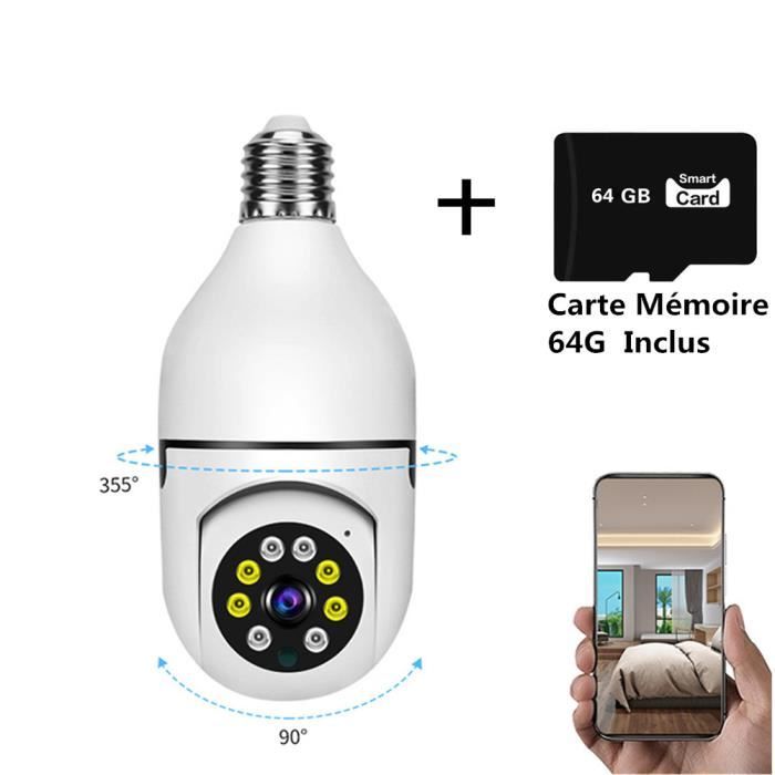 Caméra de Surveillance 64G Carte Mémoire Inclus LED Panoramique Sans