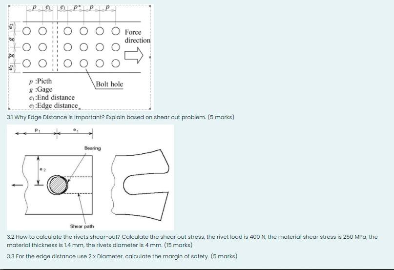 Solved O O Force direction bo po p Picth Bolt hole g Gage e, Edge Distance Vs Edge Margin there is a difference between edge margin and edge distance. edge margin refers to the space between the content and the edge of the page, while edge distance measures the distance between different elements within the layout. as long as the t/d (thickness/diameter) ratio is between 0.5 and 2 and the e/d (edge distance/diameter) is greater than. Edge Distance Vs Edge Margin.