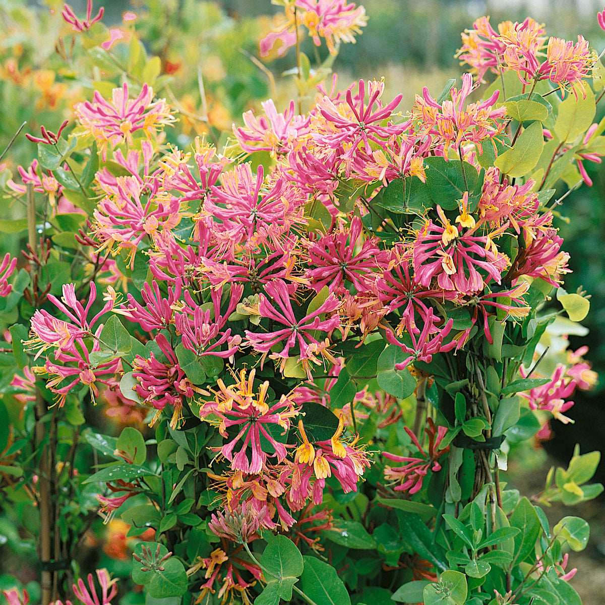 Honeysuckle 'Goldflame' Trees and Shrubs Buy plants online, Buy Honeysuckle Goldflame Throughout summer, honeysuckle 'gold flame' bears whorls of tubular flowers, with an irresistibly rich, heady scent. Find out how to grow, prune, and propagate it, and see alternative plants and guides. Learn about this fragrant and showy honeysuckle vine with pink and orange flowers. An award winning fragrant honeysuckle with pinky red outer, orange coloured inner summer flowers, which are. Honeysuckle Goldflame.