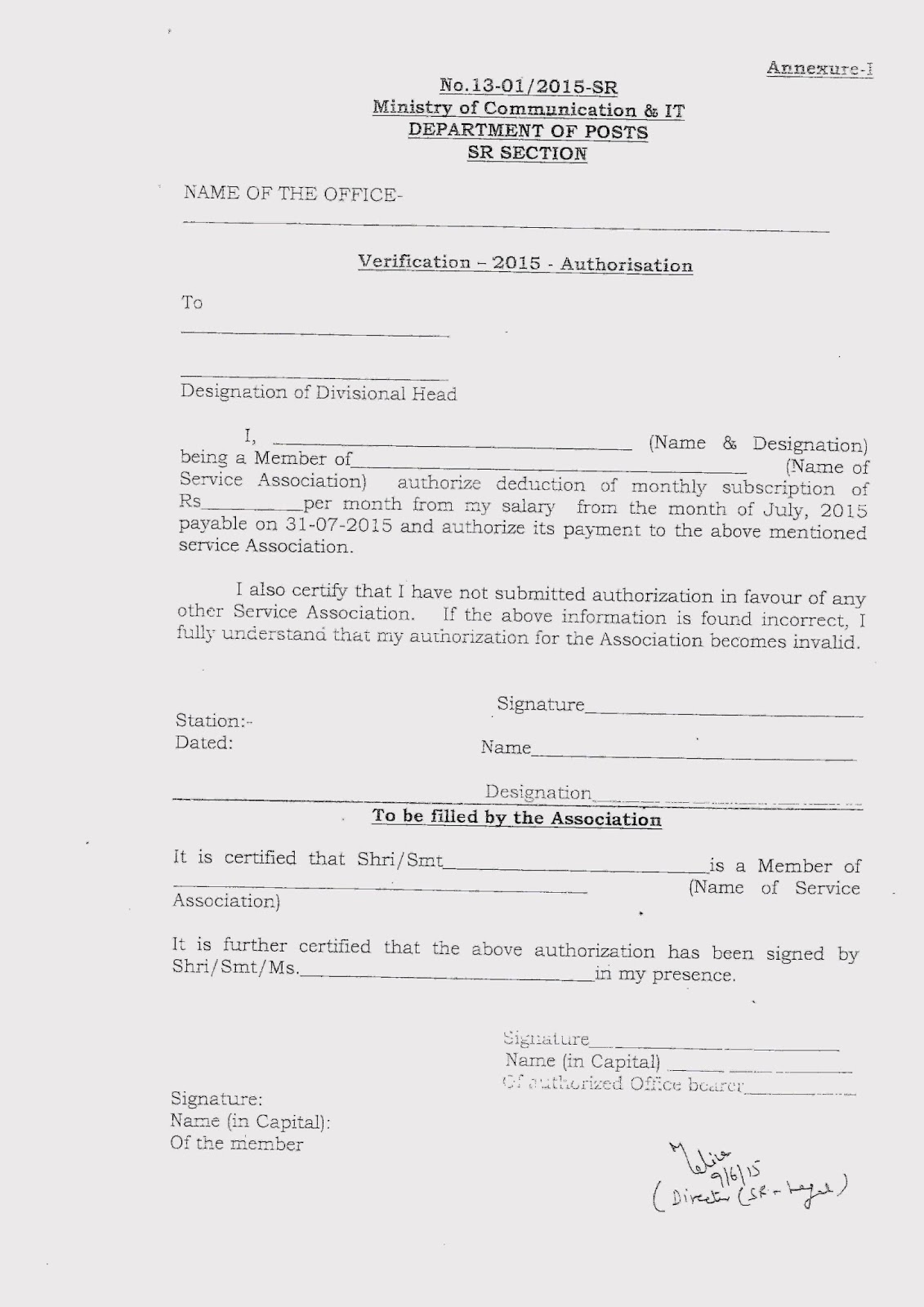 ALL INDIA POSTAL EMPLOYEES UNION GDS (NFPE) VERIFICATION OF