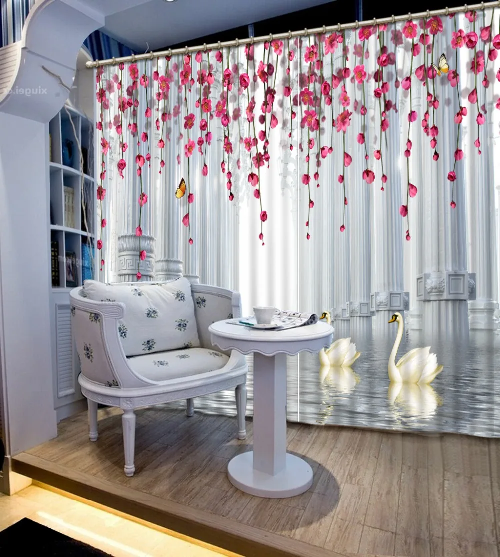 customize European style Curtains Any size Roman column lake swan