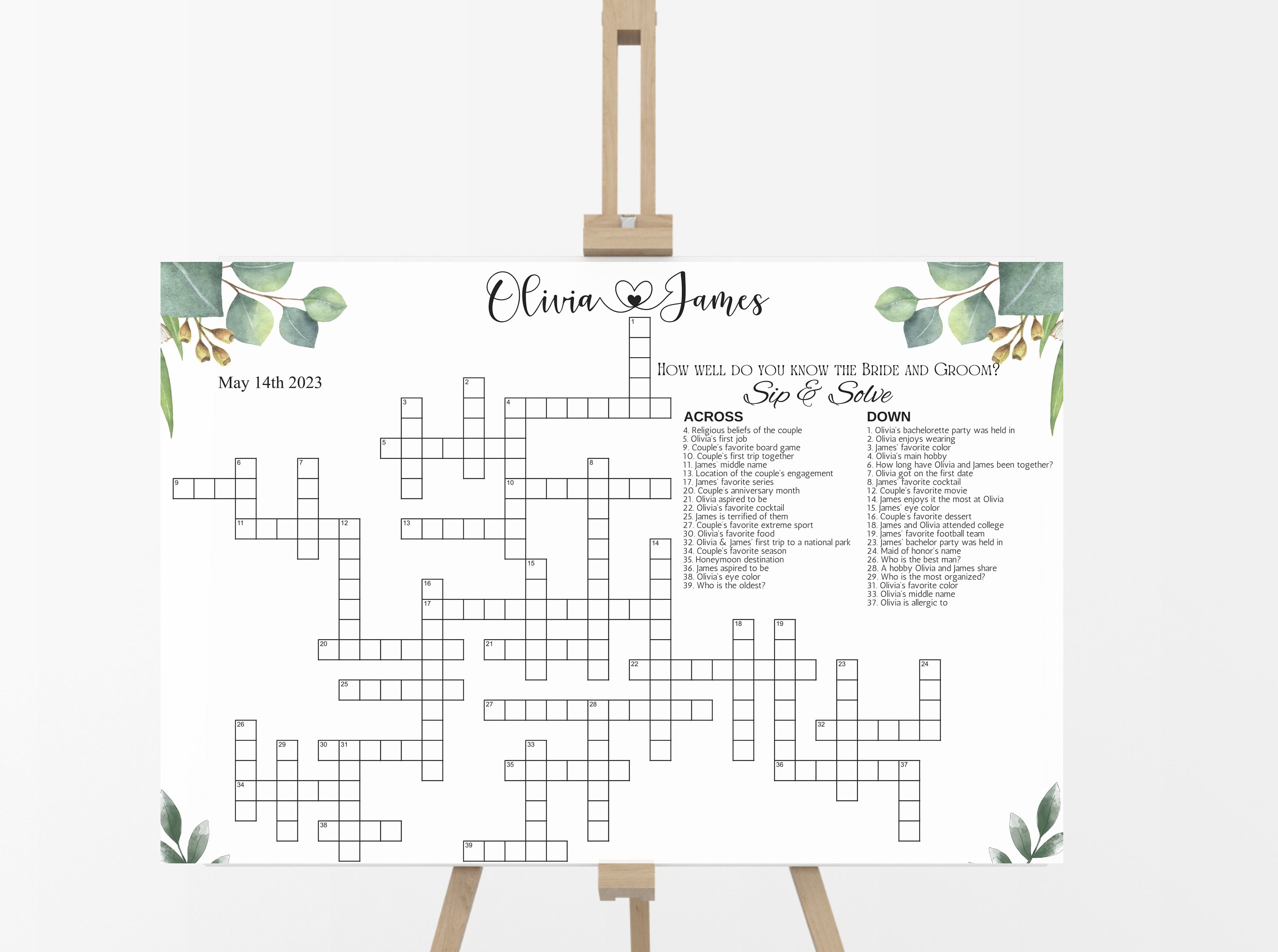 Custom Crossword Puzzle Giant Crossword Puzzle Sip & Solve Etsy UK