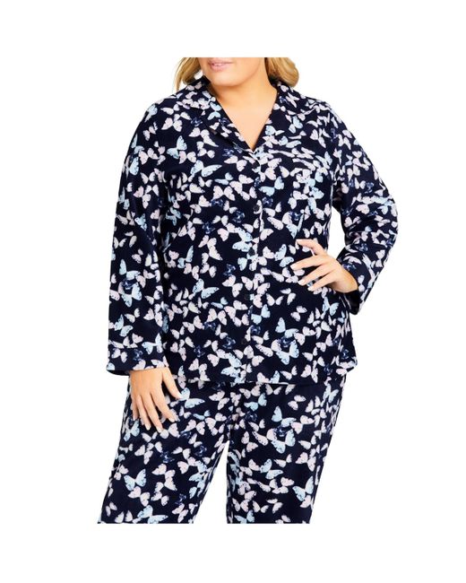 Avenue Plus Size Button Fleece Sleep Top in Blue Lyst