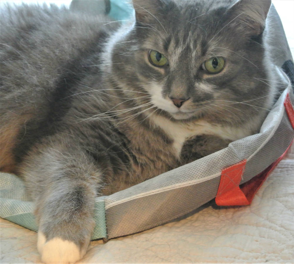 Solve Greyson sitting in his Petsmart bag jigsaw puzzle online with 42