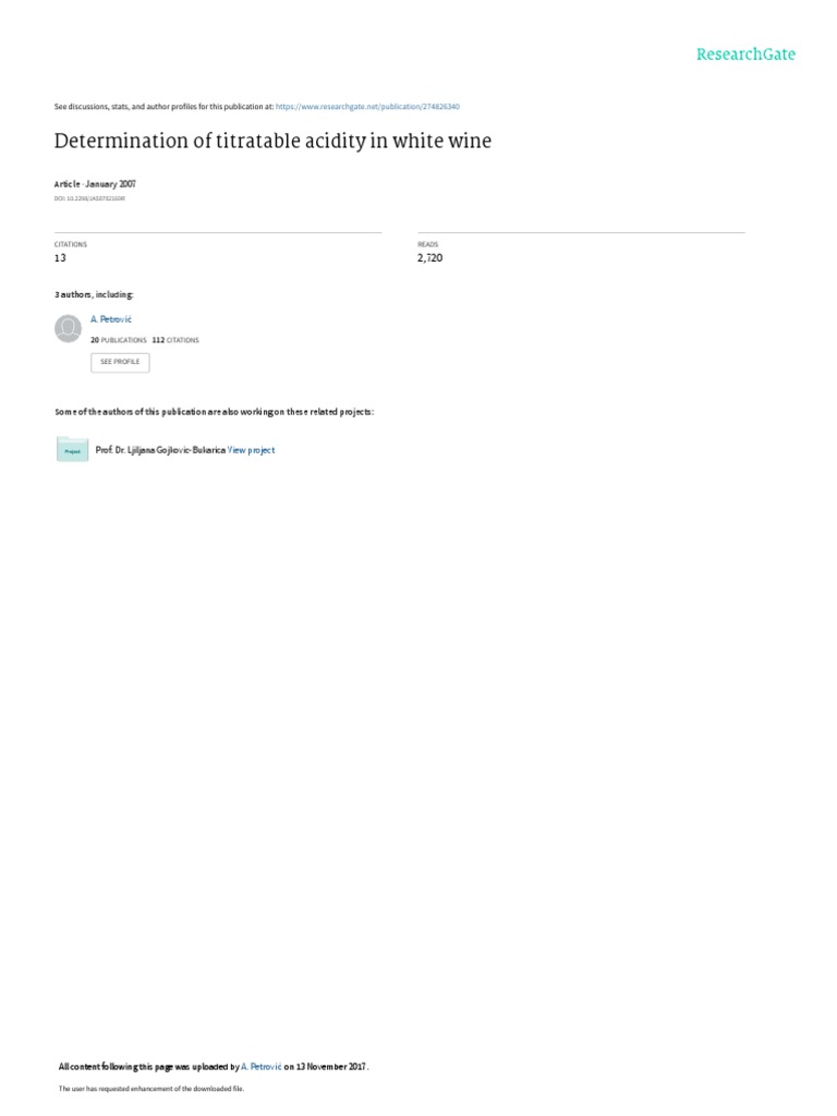Determination of Titratable Acidity in White Wine PDF Titration
