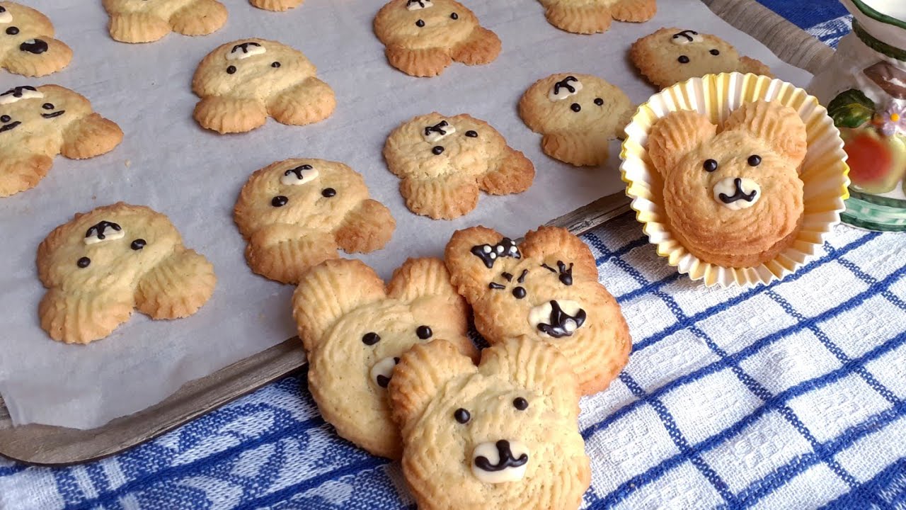Teddy Bear Butter Cookies Recipe asmr YouTube