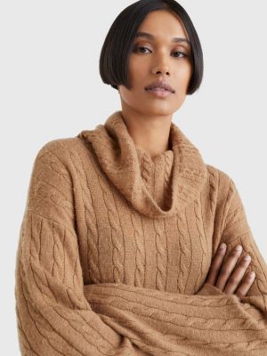 Relaxed CableKnit Wool Roll Neck Dress BROWN Tommy Hilfiger