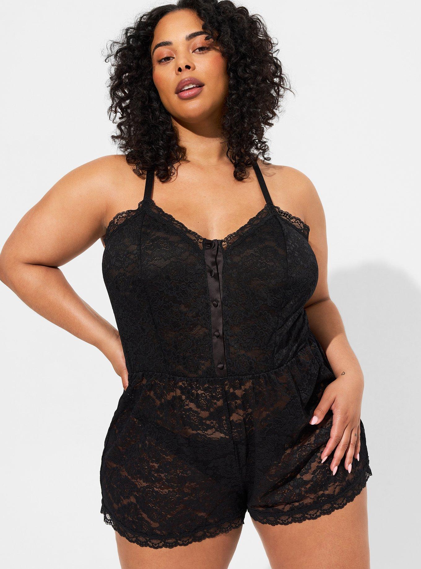 Plus Size Simply Lace Romper Lace Black Torrid