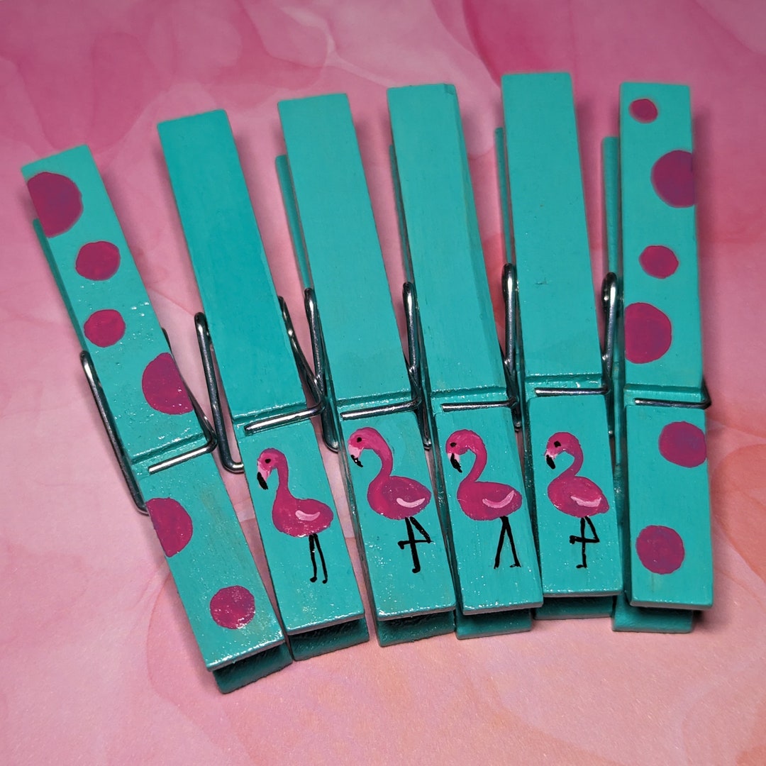 Flamingo Hand Painted Clothes Pins Bag Clip Chip Clip Pool Etsy