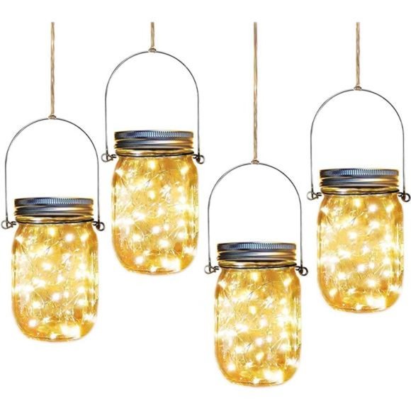 Mlambert 4 Pack Solar Hanging Mason Jar Lights with Stakes, Outdoor Hanging Jar Lights With Solar Panel Today, we’re going to review three of the best hanging solar led mason jar lights we could find. Each of our hanging solar lights has 20 leds, which are beautiful and bright in every occasion. Hanging mason jar solar lantern, garden lighting, walkway lighting, outdoor decor, indoor night light. All of them also seem reasonably durable, so you don’t Solar. Hanging Jar Lights With Solar Panel.