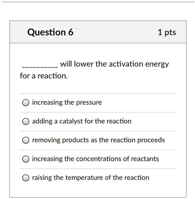 SOLVED Question 6 1 pts will lower the activation energy for a