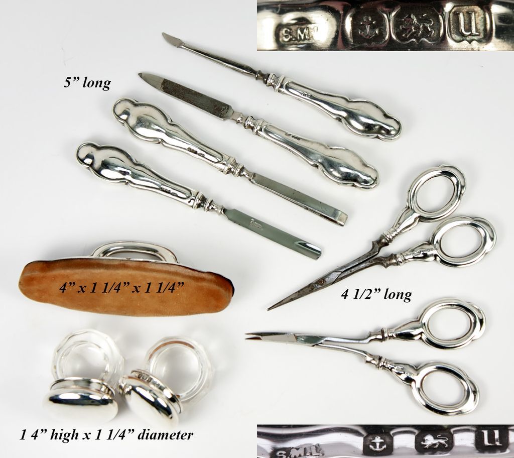 Antique English Sterling Silver Manicure & Vanity Set in Orig. Box, 9pc