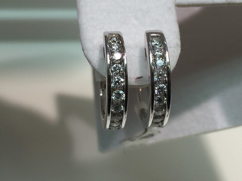 1 Carat TW ChannelSet Diamond Hoop Earrings in 10K White Gold ERF12749 Channel Set Diamond Hoops Dainty yet dazzling, these huggie hoop earrings add a touch of sparkle and sophistication to any attire. You can shop by price point, or customize your search and filter by desired composition, diamond color, clarity, or shape. Discounted price $974.99 original price $1,299.99. Elevate your jewelry game to new heights with our exquisite 14k gold or platinum hoop huggies channel. Channel Set Diamond Hoops.