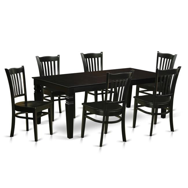 Dining Set with One Logan Table & Six Wood Chairs, Rich Black 7 Piece