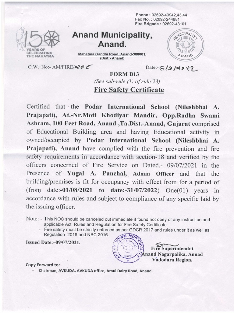 Gujarat Fire License Gujarat Fire And Life Safety Rules Prevention, life safety and fire protection measures to be provided and performed other related activities required to be carried out, in. List of buildings requiring fire safety certificate. (1) this act may be called the gujarat fire prevention and life safety measures (amendment) act, 2021. Renders it necessary to repeal the gujarat fire prevention and life safety measures regulations, 2016;. Gujarat Fire And Life Safety Rules.