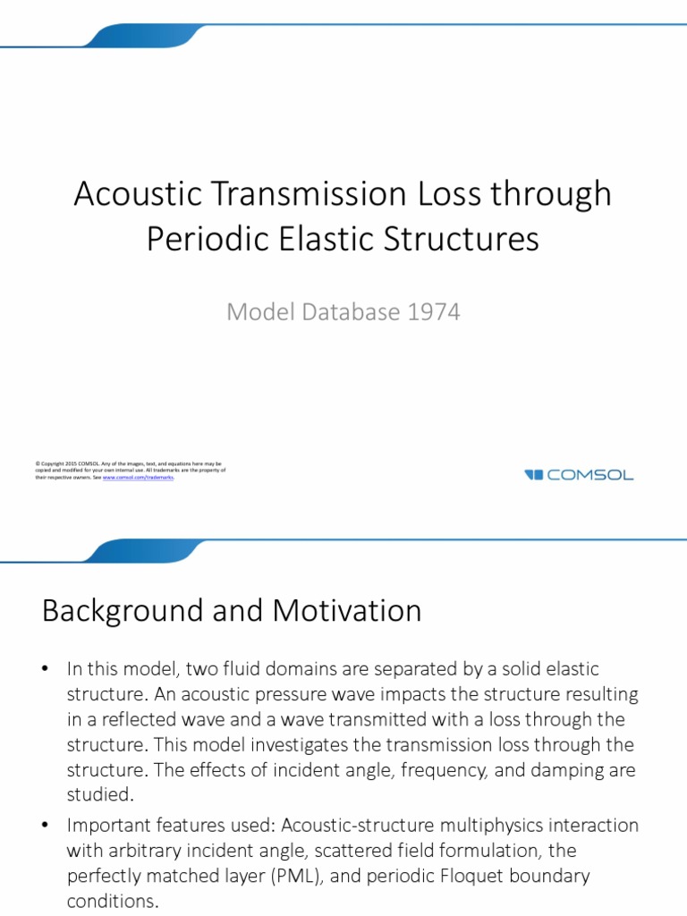 PPT COMSOL Multiphysics Acoustic Transmission Loss Through Periodic Transmission Loss Definition Acoustics learn how sound passes through walls and barriers with the physical approach to engineering acoustics. learn about the definition, measurement, and applications of sound transmission loss, the fraction of incident energy transmitted. Transmission loss refers to the reduction of sound energy as it passes through a barrier or material, typically. sound transmission loss (stl) is a quantification. Transmission Loss Definition Acoustics.