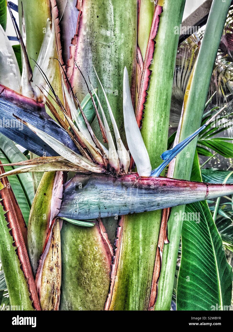 White Bird of Paradise Flower Stock Photo Alamy Bird Of Paradise Flower White How to care for a white bird of paradise the white bird of paradise is an absolute fan favorite, and we can see why it has made a tropical splash in the plant community. The strelitzia nicolai, also known as the giant white bird of paradise, is a stunning tropical plant native to south africa. It was the official flower. Bird Of Paradise Flower White.