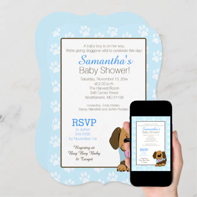 Handsome Puppy Dog Paw Print Baby Shower Invite Zazzle