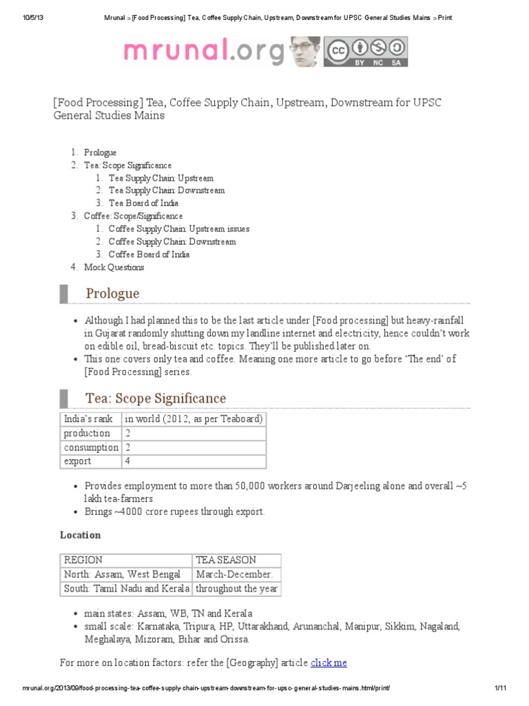 Mrunal (Food Processing) Tea, Coffee Supply Chain, Upstream, Downstream