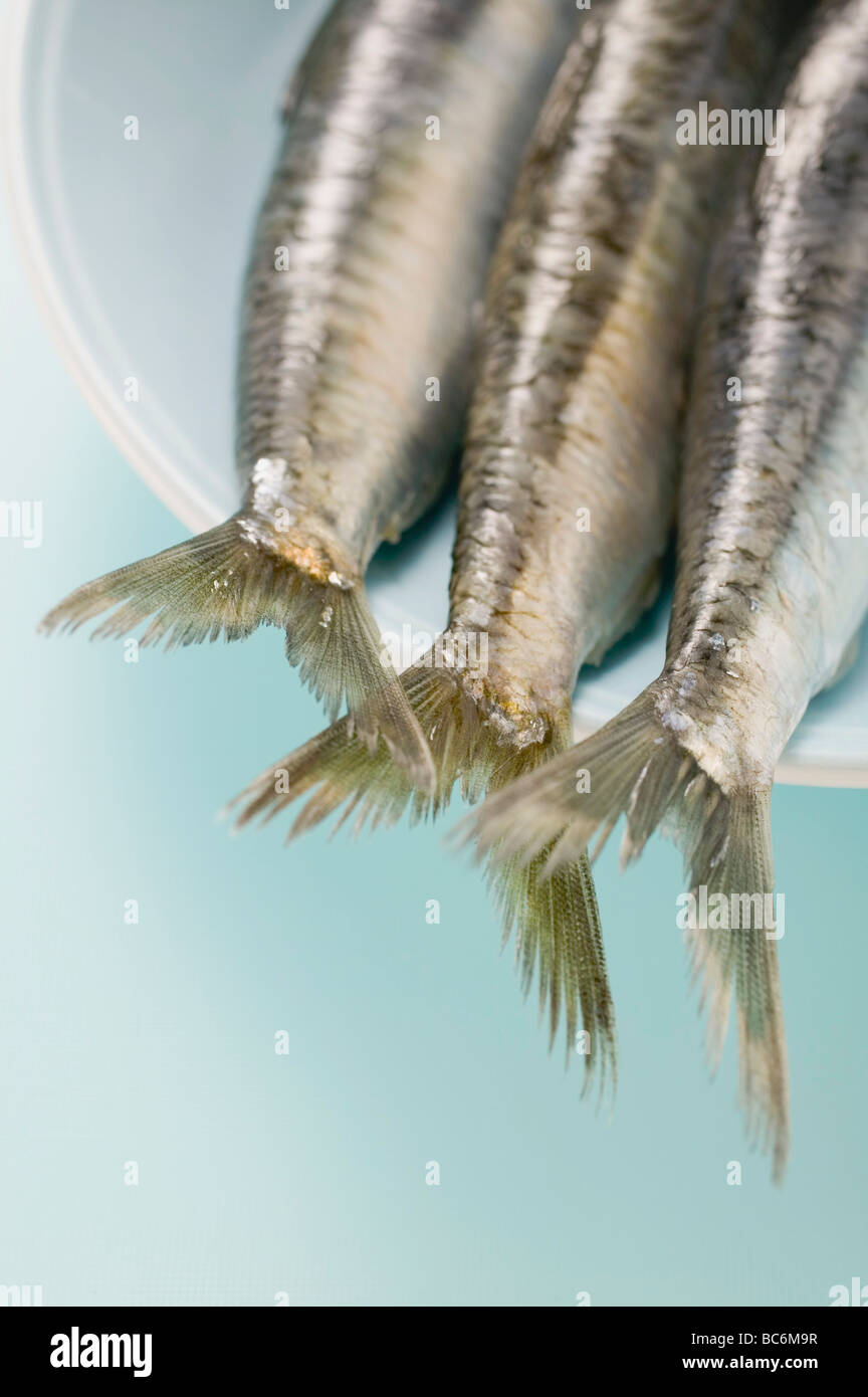 Anchovies in white dish (detail Stock Photo Alamy