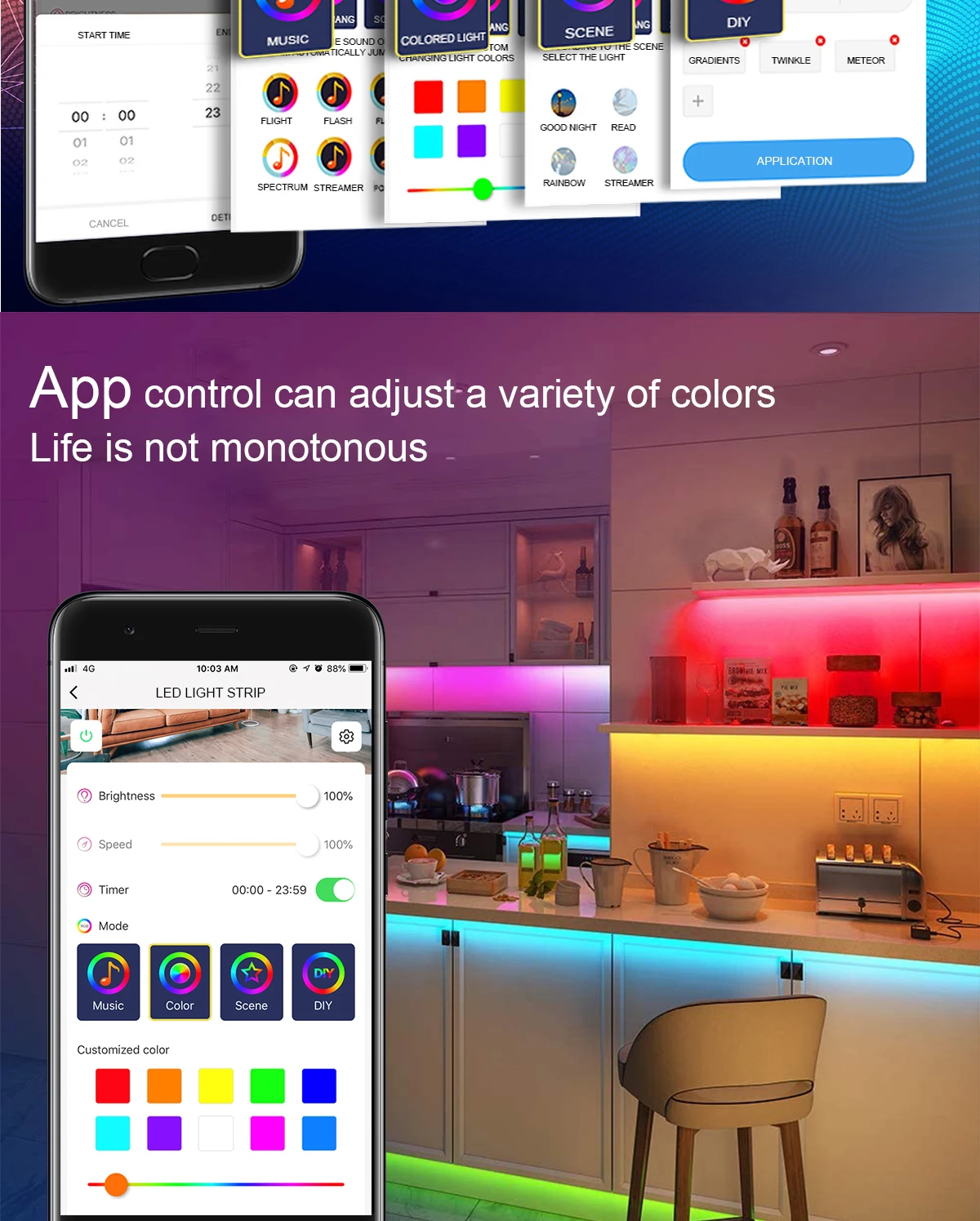 Diyife Smart LED Light Strip, [Timer Function] 3m/9.8ft LED Strip Led Light Strip Smart With their flexibility, smart capabilities, and versatile mounting options, philips hue lightstrips bring smart light to the most unexpected places — under a bar, along a shelf, or even. Smart led strip lights are not just about colours and brightness; The smart led light strip work with both alexa & google assistant. 1m+ visitors in the past month We have. Led Light Strip Smart.