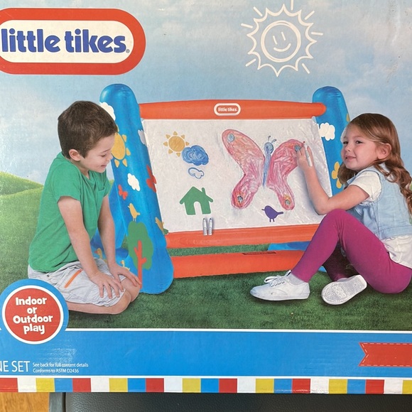 Little Tikes Easels Large inflatable tent that doubles as an art easel. It can be laid flat and used as a table or flipped on its legs and used as an. Perfect size for your child’s arts and crafts or even homework. The roomy interior provides a private area for kids to read books, color, roleplay or nap! Recommended for kids ages 3. Little Tikes Easels.