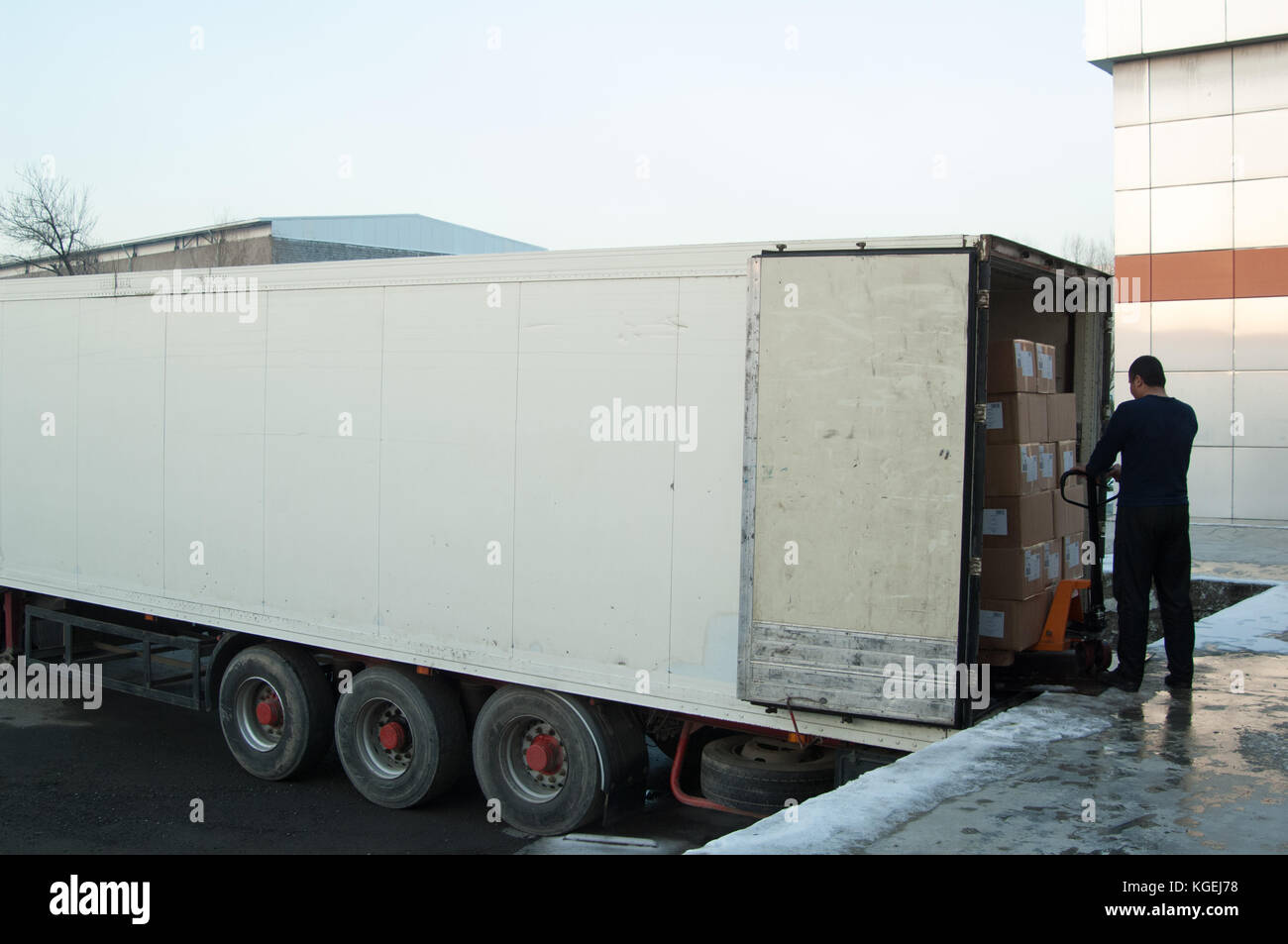 worker loads boxes into a truck Stock Photo Alamy