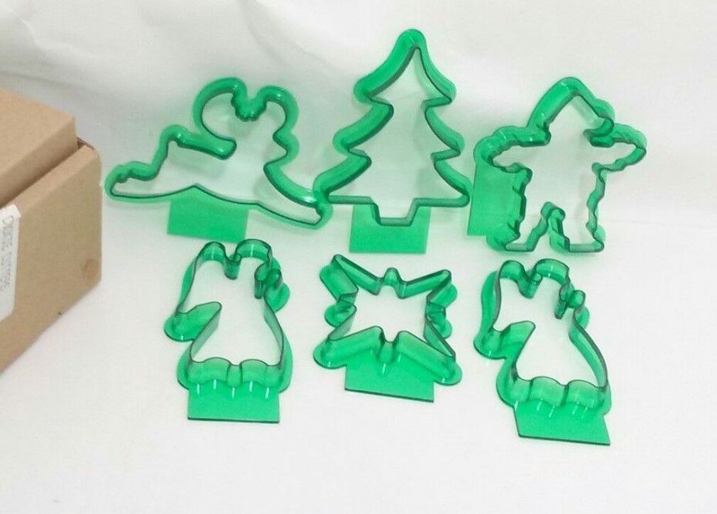 Avon Holiday Cookie Cutters 6 Total Green PlasticNOS