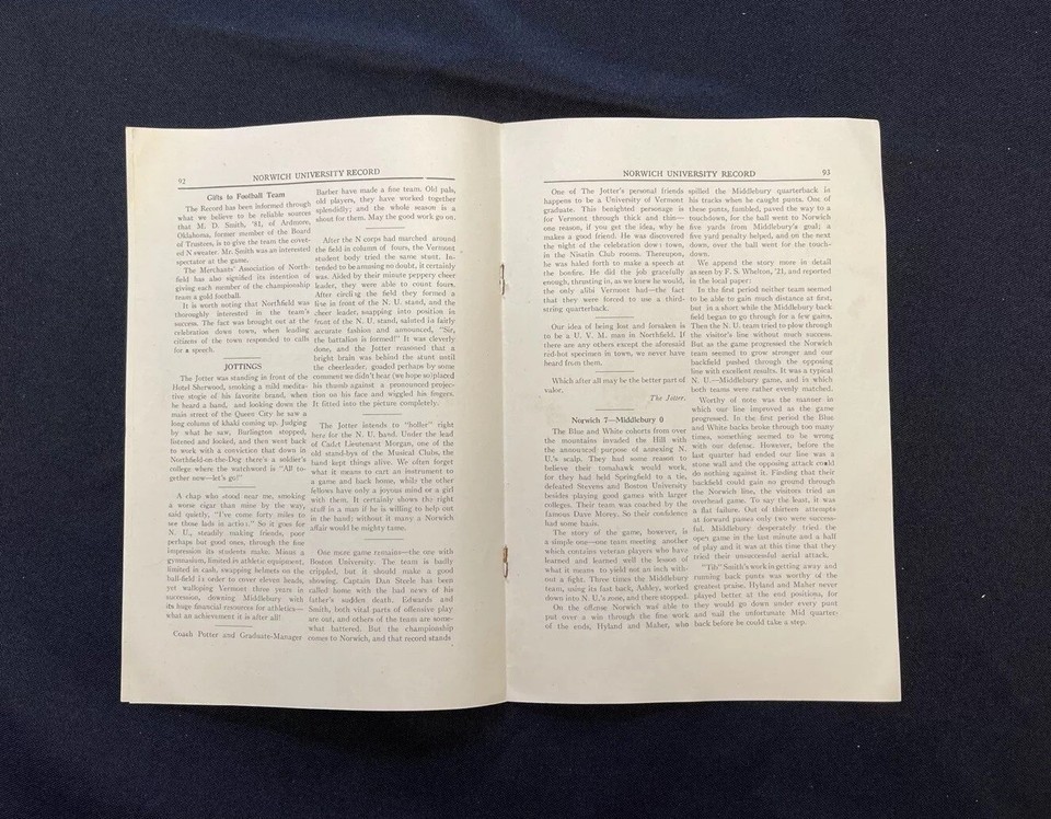 1920 Norwich University Record Northfield Vermont College Football