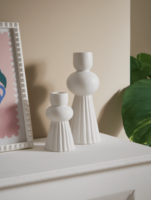White Ceramic Taper Candle Holder Set of 2 Home at ASDA