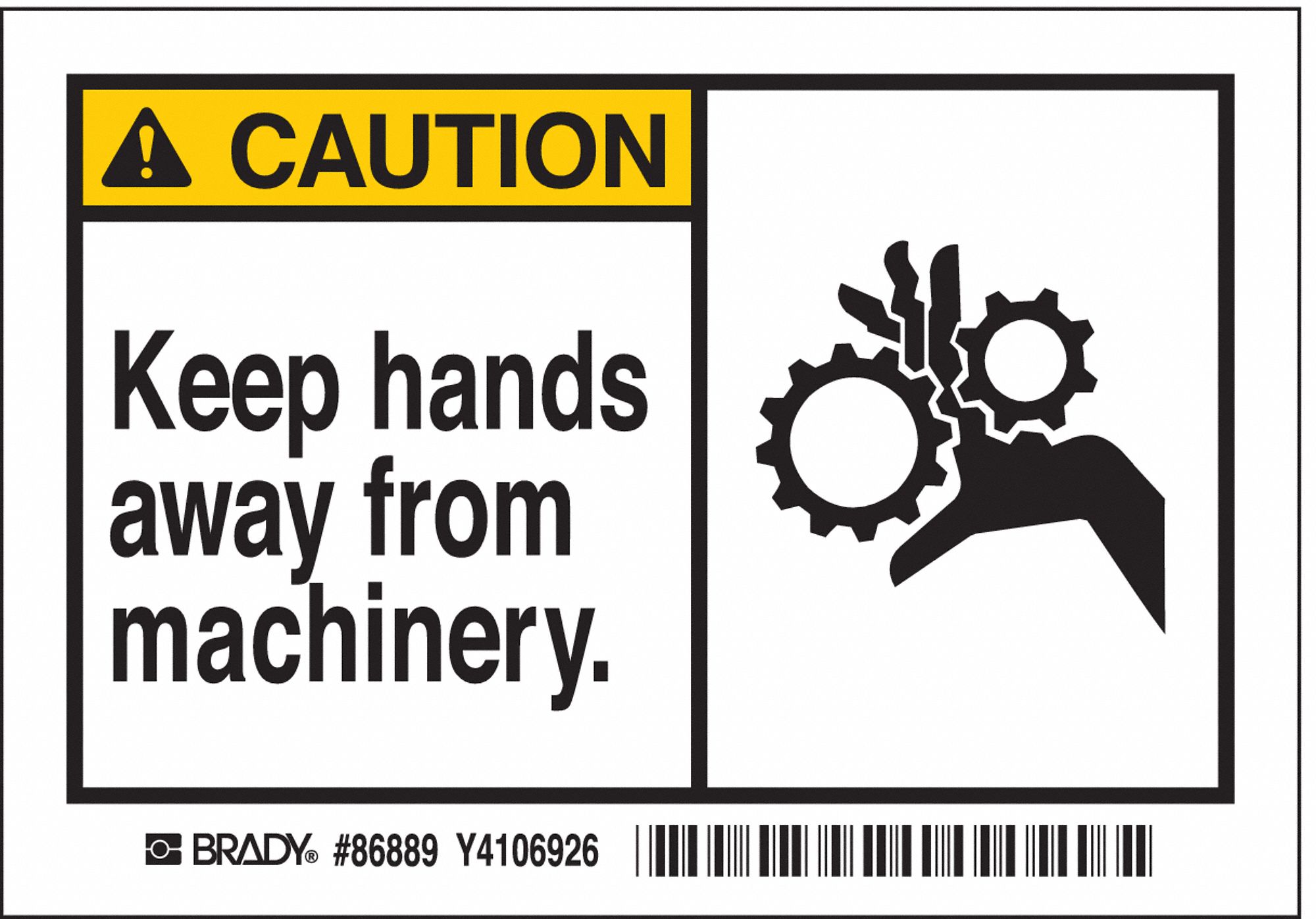 BRADY Machine/Equipment Label, Keep Hands Away From Machinery., Sign