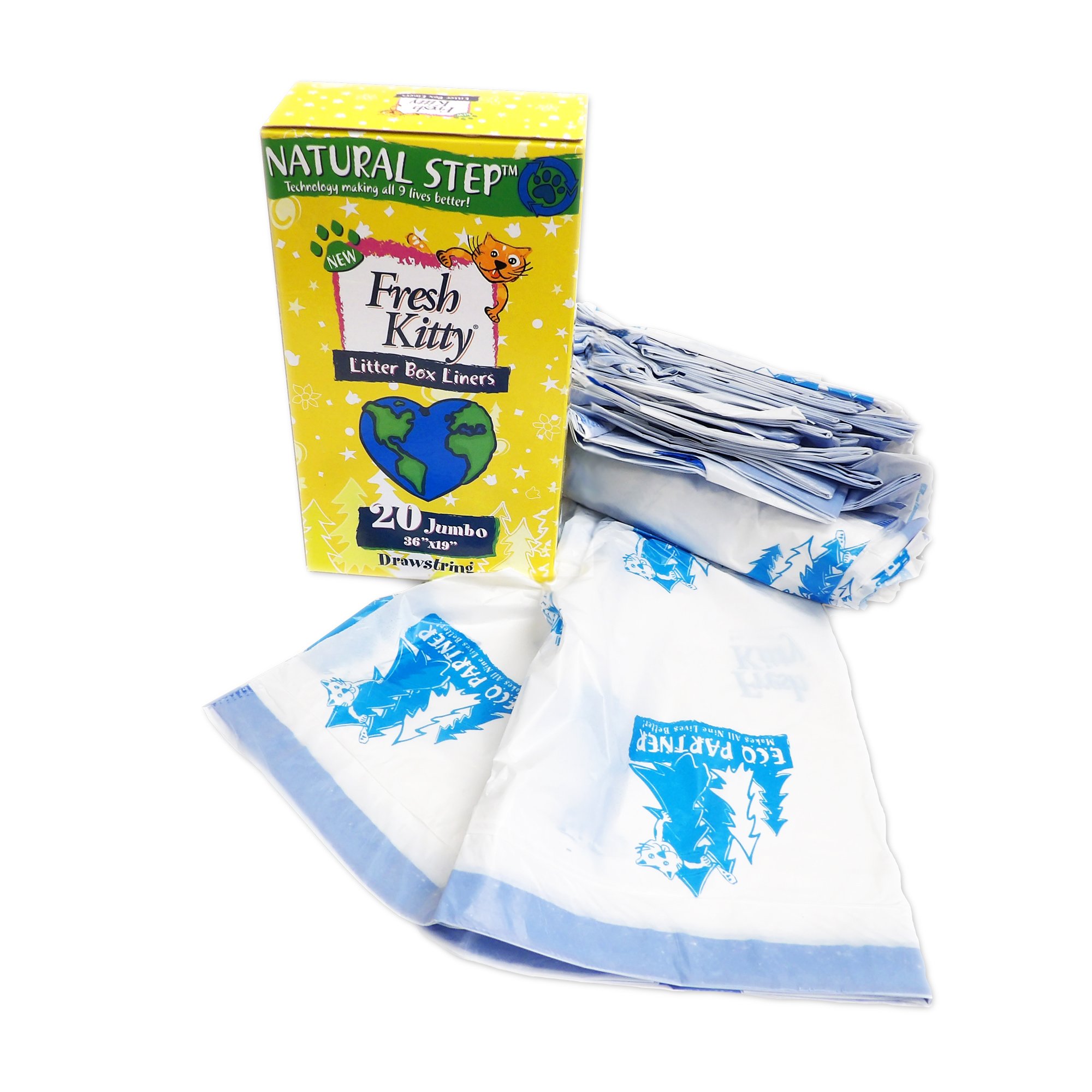 FRESH KITTY Jumbo Thick Litter Box Liners, 15 count Fresh Kitty Litter Box Liner With clever design and innovation, kitty cleanup just got easier! Presents the 80 count jumbo. Includes twist ties so it’s easy and effortless to use by simply lifting, securing and tossing. Fresh step drawstring litter box liners are a convenient and clean way to maintain your kitty litter box. Cats can go through a lot of litter, so it’s important. Fresh Kitty Litter Box Liner.