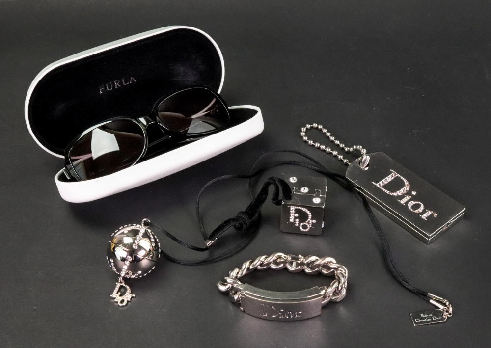 Dior; a bracelet together with a Dior Swarovski Dice lipstick container