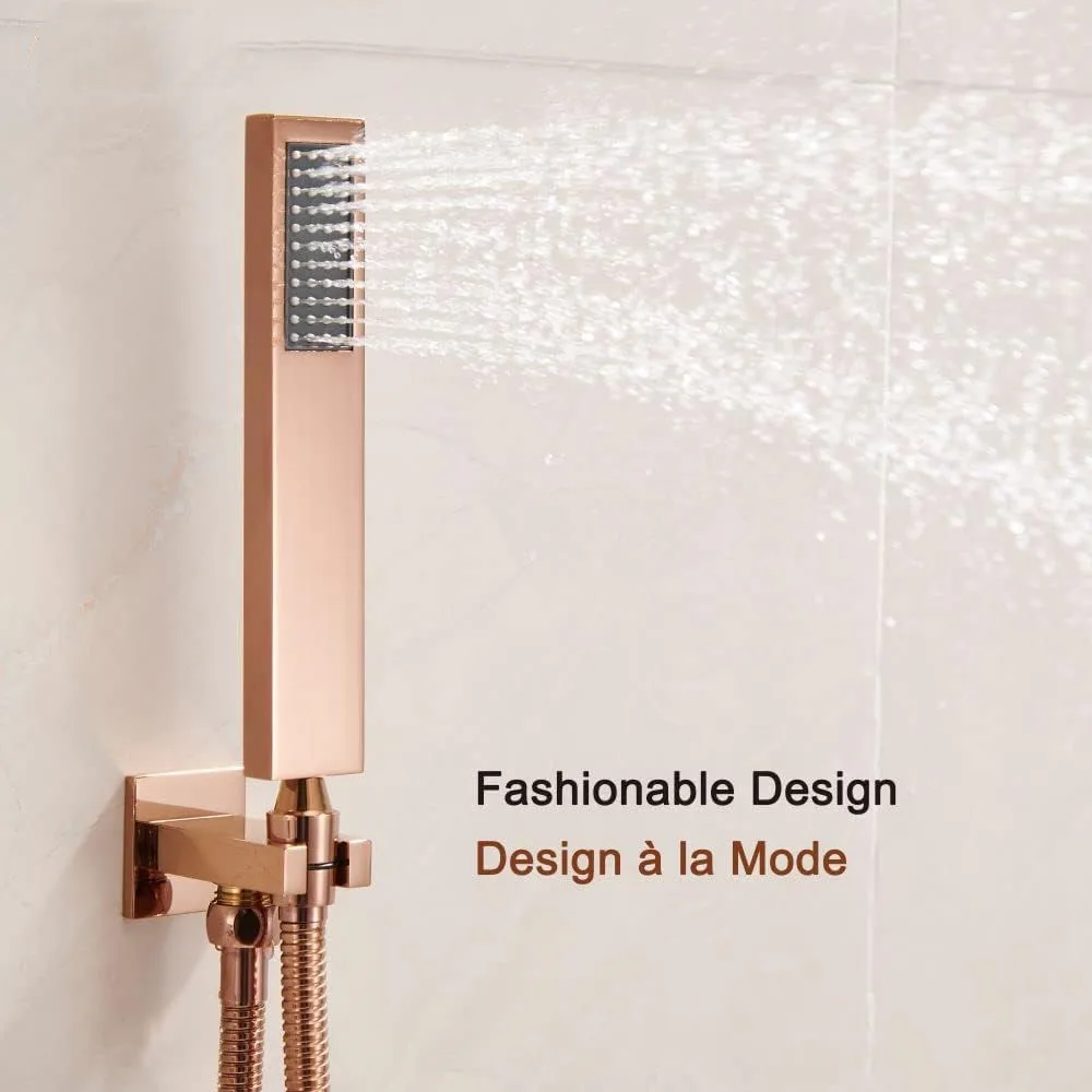 Rose Gold Thermostatic Remote Controlled Musical Recessed Ceiling Mount Rose Gold Shower System Iriber brushed rose gold rain shower system with 12 inch shower head and handheld bathroom wall mounted shower set contain shower faucet. With its sleek rose gold finish, this system is perfect for those who want to add a touch of glamor to their everyday. The 25 slide bar adjusts the heights to serve all family members. Enjoy a luxurious. Rose Gold Shower System.