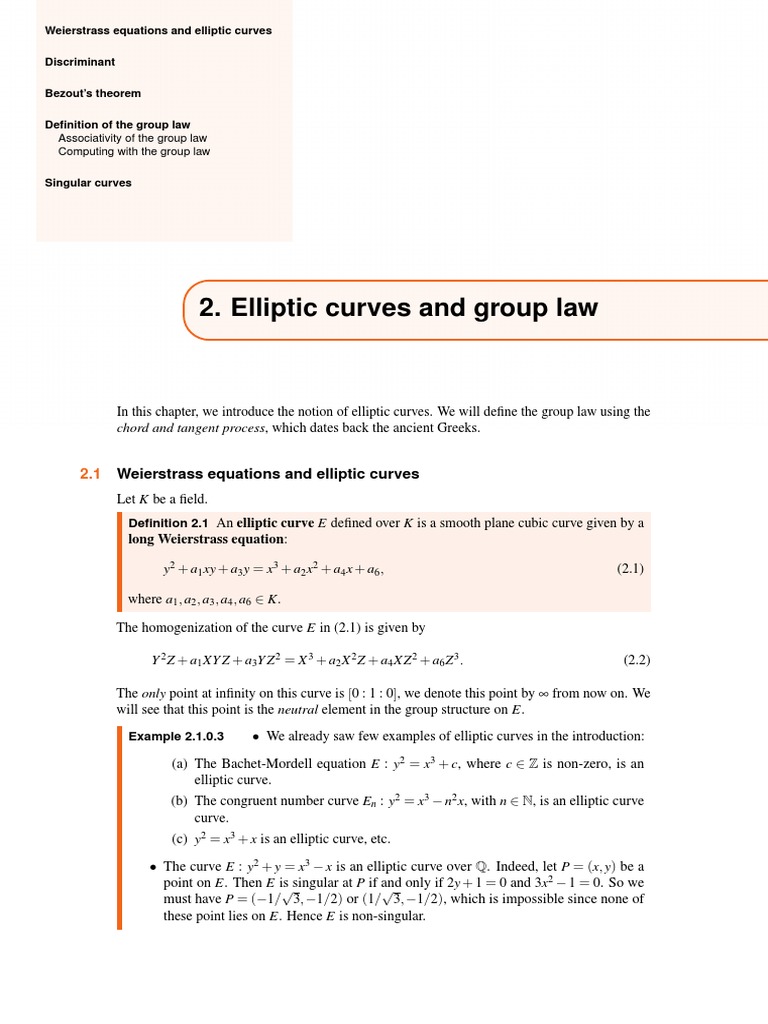 1 Group law on an elliptic curve We can now state the Elliptic Curve... Download Scientific Group Law Elliptic Curve Let e be an elliptic curve de ned by y2 = x3 + ax + b. The elliptic curve group law. A general elliptic curve is a nonsingular projective curve which is the solution set to a degree 3. Let p 1 = (x 1;y 1) and p 2 = (x 2;y 2) be points on e with p 1;p. Group Law Elliptic Curve.