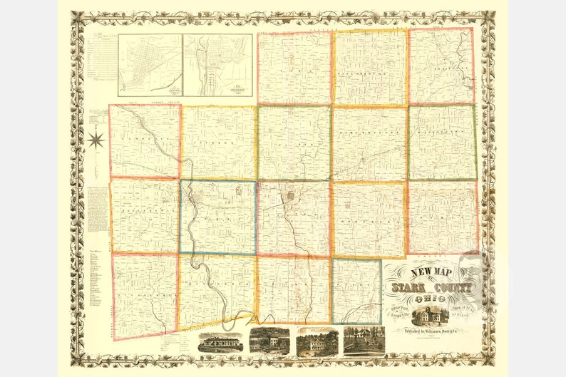 Vintage Stark County Map 1850 Old Map of Stark County Ohio Etsy