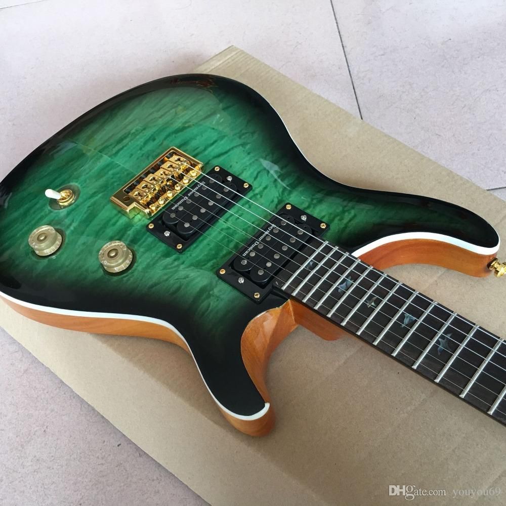 Custom Wholesale 6 Top Top Electric Guitars, Handmade Green Top Flame