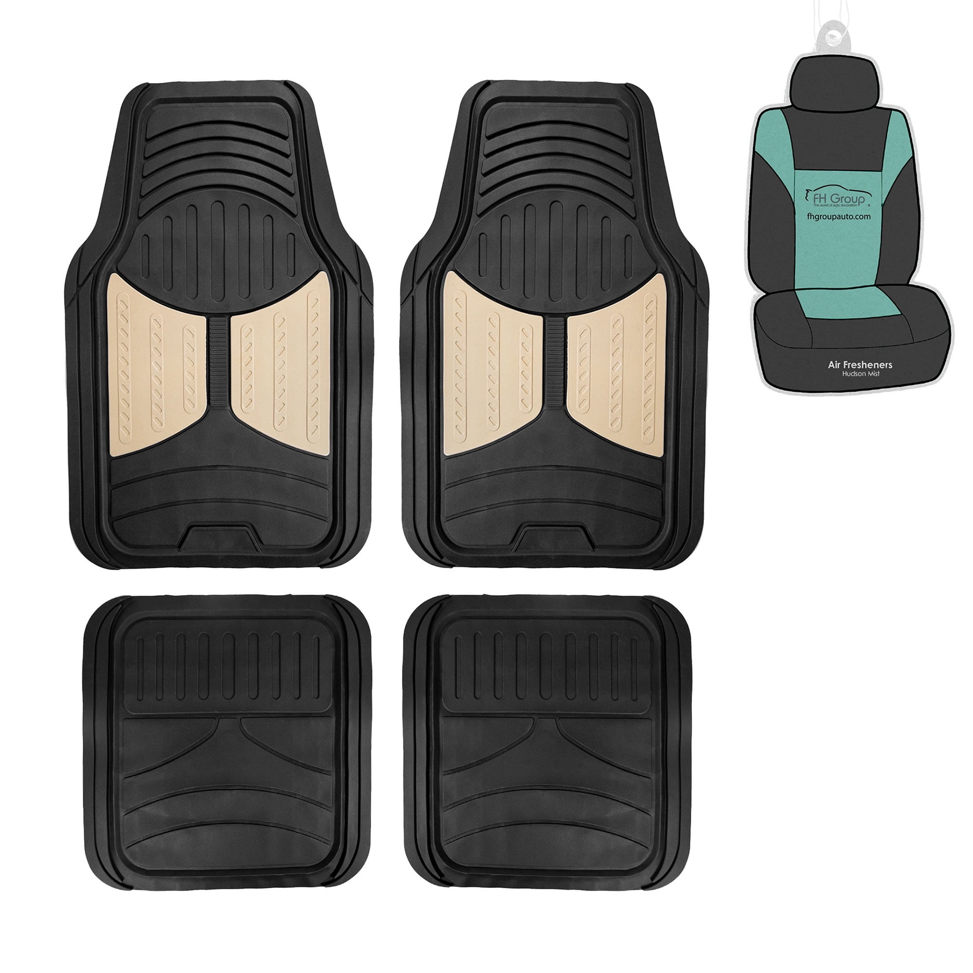 FH Group Climaproof Rubber Beige Car Floor Mats, Universal Fit 4pc Full