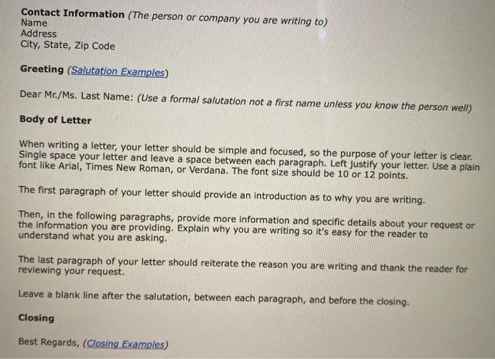 Solved Here is a template for a formal letter that you can