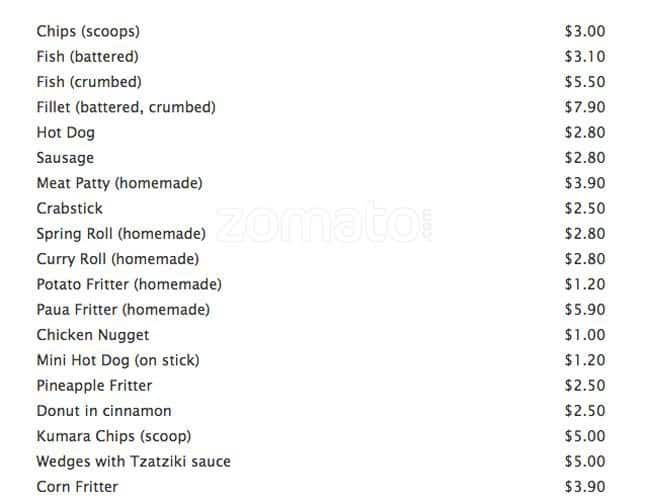 Menu at John's Fish Market restaurant, Lower Hutt