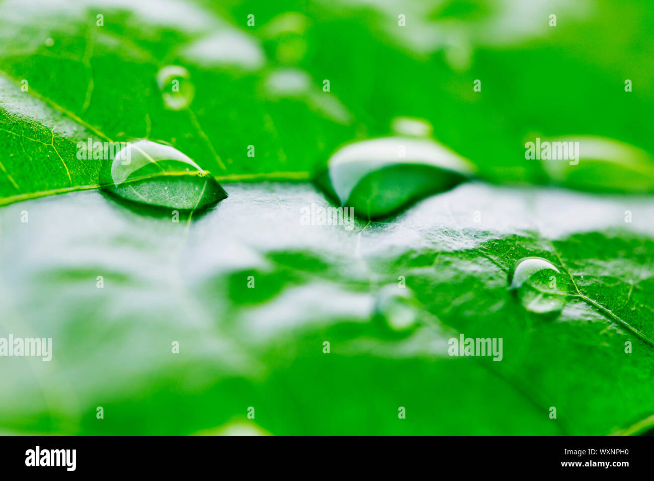 water drops on a leaf Stock Photo Alamy Water Drops On Leaves Water drops on plants can be caused by transpiration, dew, or guttation. Plants release water through stomata, which are small leaf pores found on the undersides of their leaves. Pothos sweating is a natural process called guttation, where water drips off the leaves due to high soil moisture or humidity. Learn why indoor plants drip water from their leaves and. Water Drops On Leaves.