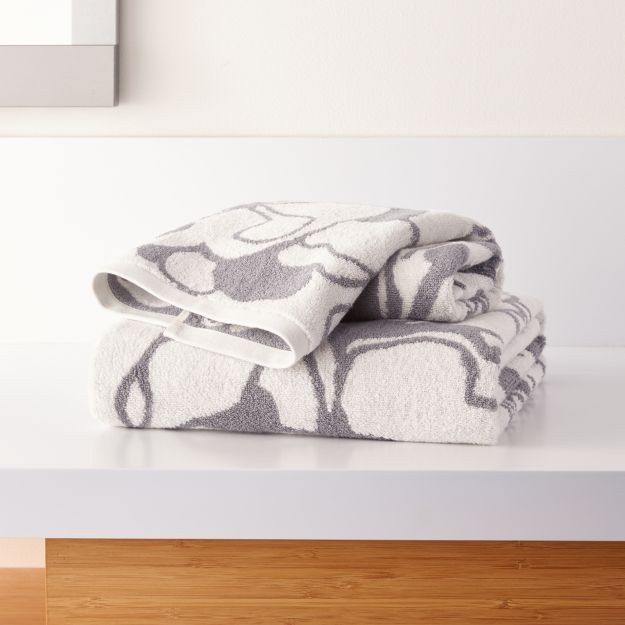 Gemma Grey Organic Floral Bath Towels Crate and Barrel